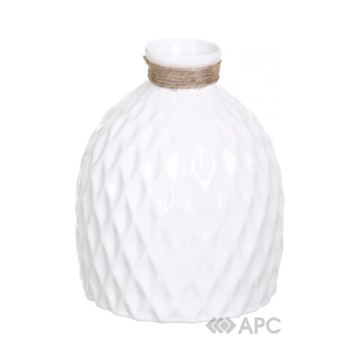 Керамическая ваза Eterna сочетает в себе оригинальность с максимальной практичностью. Ее форма - это экзотический мешок туземца с ребристой поверхностью, перехваченный на тонкой горловине крафтовым шнурком. Цвет, форма и фактура делают вазу универсальной для любого интерьера.