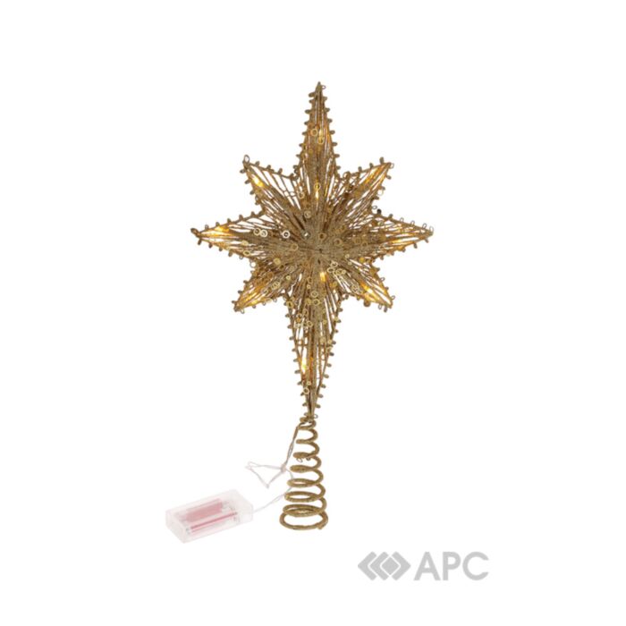Верхушка на елку с подсветкой Звезда BonaDi 40 см золотая — это незаменимый отделочный аксессуар, который создаст уникальную атмосферу. Она станет отличным подарком на праздники и будет радовать детей, взрослых и гостей дома. Особенностью, отличающей ее от других моделей в эти категории — это мягкая LED-подсветка, которая обеспечит волшебный шарм. Цветовая гамма из золотых оттенков идеально подчеркнет утонченность любого интерьера. Основным материалом стал легкий металл, устойчивый к повреждениям, а также сохранит свои внешние характеристики и внутренние свойства на длительное время.