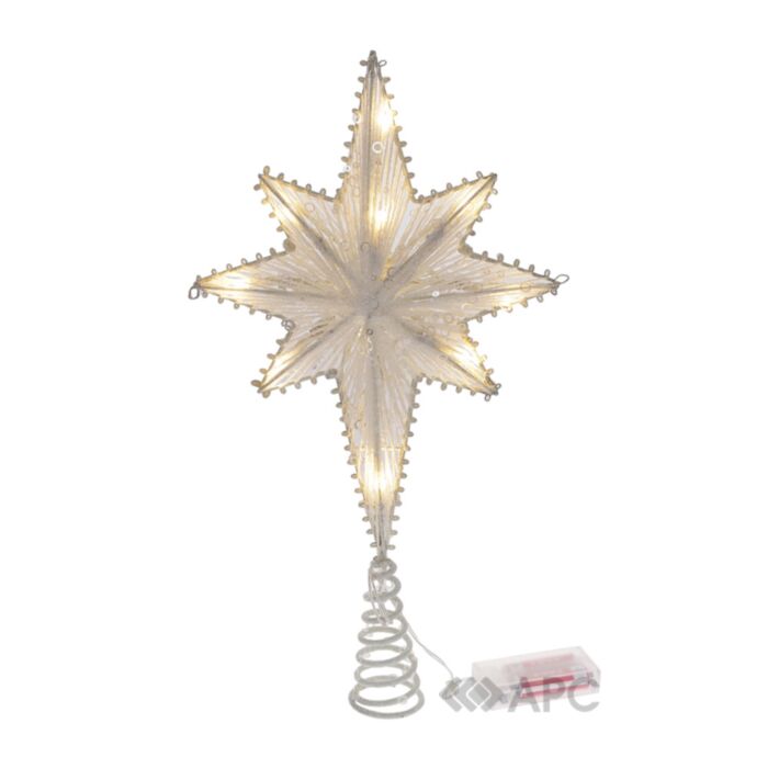 Верхушка на елку с подсветкой Звезда BonaDi 40 см белая — это незаменимый отделочный аксессуар, который создаст уникальную атмосферу. Она станет отличным подарком на праздники и будет радовать детей, взрослых и гостей дома. Особенностью, отличающей ее от других моделей в эти категории — это мягкая LED-подсветка, которая обеспечит волшебный шарм. Цветовая гамма из белых оттенков идеально подчеркнет утонченность любого интерьера. Основным материалом стал легкий металл, устойчивый к повреждениям, а также сохранит свои внешние характеристики и внутренние свойства на длительное время.