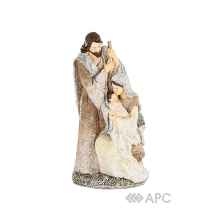 Вертеп Art-pol 178829 — это трогательная и изящная рождественская композиция, воплощающая сакральный сюжет рождения Иисуса. Фигурка изготовлена из дерева и символизирует Святое Семейство (Иосиф, Мария и младенец Иисус), имеет значительные размеры: примерно 29х15,5х13 см, что делает ее заметным элементом праздничного декора. Фигуры объединены в единую композицию, они с нежностью склонились над младенцем, которого Мария держит на руках. Цветовая гамма выполнена в приглушенных, натуральных тонах (песочный, коричневый, голубой), что подчеркивает глубокий и спокойный характер этой сцены. Этот вертеп является классическим украшением, которое придаст духовную теплоту и значимость вашему дому во время зимних праздников, идеально подходит для размещения под елкой или на полке.