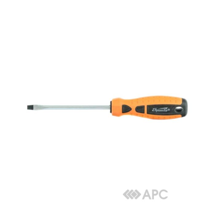 Плоская отвертка Sparta Point 11766 используется для работы с креплениями, которые имеют прямой шлиц (SL). Намагниченное жало обеспечит лучший контакт инструмента с винтом или шурупом. Стержень изготовлен из хром-ванадиевой стали твердостью 50-52 HRC. Рабочая часть имеет защитное покрытие: жало - фосфатное, а стержень - никелевое. Двухкомпонентная ручка снижает нагрузку на запястье, поэтому можно работать с отверткой дольше.