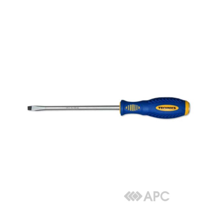 Для крепко затянутых или заржавевших шурупов и винтов лучше использовать ударную отвертку. Плоская отвертка Technics Master 46-252 прекрасно справится с такими задачами. Шестигранное жало с магнитным наконечником улучшит фиксацию инструмента с креплением, которое нужно закрутить или выкрутить. Стержень длиной 125 мм изготовлен из хром-ванадиевой стали. Пластиковая ручка покрыта резиной, поэтому хорошо держится в руках и устойчива к повреждениям. По инструмента можно наносить удары молотком. Отвертку Technics Master 46-252 нужно использовать с креплениями, которые имеют шлиц SL6.