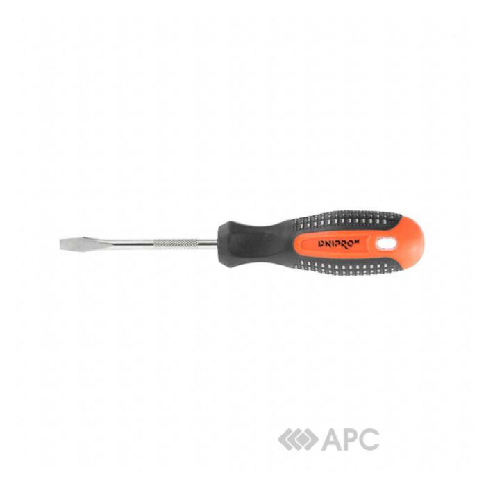 Отвертка плоская Dnipro-M 19030006 с прямым шлицем типа SL является базовым инструментом в основном арсенале мастера ремонта. Плоский шлиц является распространенной формой для простых соединений с использованием шурупов, винтов и других элементов. Прямой шлиц часто бывает удобнее крестообразного (PH/PZ), поскольку прямая форма позволяет закручивать шурупы как со шлицем типа «-», так и «+», если не требуются излишние усилия. Таким образом, покупая одну отвертку можно получить две: основную плоскую и частичную замену крестообразной.