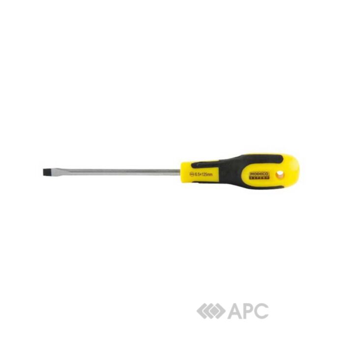Отвертка плоская Modeco MN-10-019 с прямым шлицем типа SL является базовым инструментом в основном арсенале мастера ремонта. Плоский шлиц является распространенной формой для простых соединений с использованием шурупов, винтов и других элементов. Прямой шлиц часто бывает удобнее крестообразного (PH/PZ), поскольку прямая форма позволяет закручивать шурупы как со шлицем типа «-», так и «+», если не требуются излишние усилия. Таким образом, покупая одну отвертку можно получить две: основную плоскую и частичную замену крестообразной.