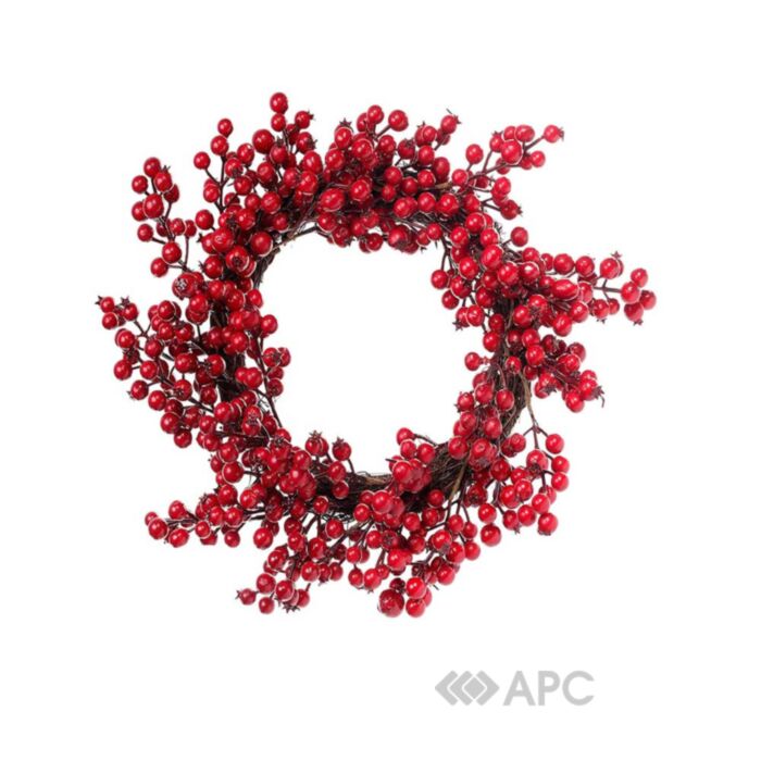 Венок декоративный с красными ягодами можно повесить как на входные двери, так и поставить на стол или журнальный столик, изящно украсив декоративными стилизованными подсвечниками, цветком Пуасенсии, новогодними игрушками и застелив рождественскую скатерть.