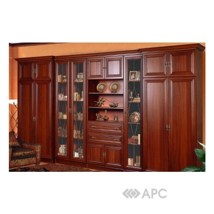 Классическая гостиная Дива выполнена в красивом цвете и сдержанном дизайне. Высокие стеклянные дверцы в витринах добавляют мебельному ансамблю "легкости". За счет такого нюанса стенка не выглядит массивной. Данная модель решит множество вопросов с расположением посуды, книг, одежды и других необходимых вещей. Корпус ДСП: орех итальянский