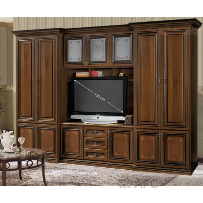 Гостиная Капри - замечательный мебельный ансамбль укомплектован вместительными закрытыми тумбами. Благодаря сдержанному дизайну, удобным размерам и достаточному количеству полок, стенка пользуется популярностью. Корпус ДСП: орех Караваджо