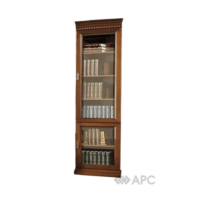 Данный элемент мебели можно использовать как витрину для посуды или книжный шкаф в гостиной или столовой. Фасад из натурального шпона вишни и рамки из массива ольхи украшают металлические ручки в цвете латунь. Натуральный шпон имеет уникальную фактуру, а также надежен и практичен в использовании.