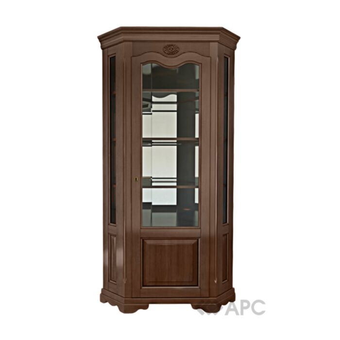 Витрина угловая правая Видень расширенная 0020 №1 станет центральным украшением любой гостиной оформленной в классическом стиле с элементами роскоши. Очень качественное производство резных декоративных элементов, фальцетная обработка стекла и натуральный цвет древесины станут неотъемлемыми элементами Вашего дома.