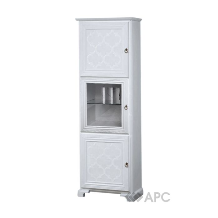 Витрина одинарная Афина №1 белая гармонично сочетает элементы классического дизайна и современного стиля, поэтому подходит ценителям разных направлений в интерьере. Данная модель из коллекции имеет три отделения с дверцей, из которых два глухих, а одно со стеклом. Фасад изделия — это патированный рамочный МДФ с лакированной филенкой с тиснением. Шкаф-витрина в гостиной идеально подходит для хранения старинной, эксклюзивной или коллекционной посуды, сувениров и книг. Такая мебель привлекает потребителей как функциональностью, так и уютным дизайном.