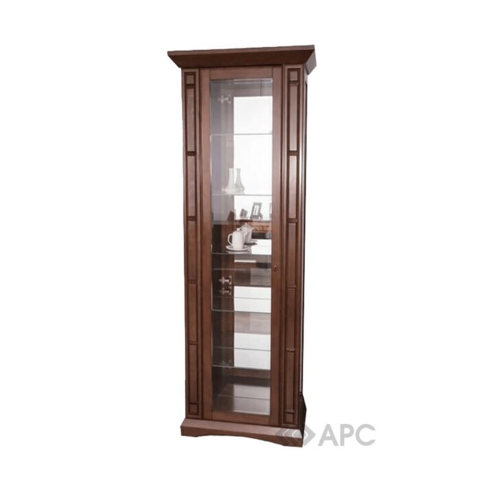 Витрина оформлена в классическом дизайне и удачно дополнит комнату в таком же стиле и прослужит много лет не теряя своих характеристик и внешнего вида за счет такого прочного материала как дерево.