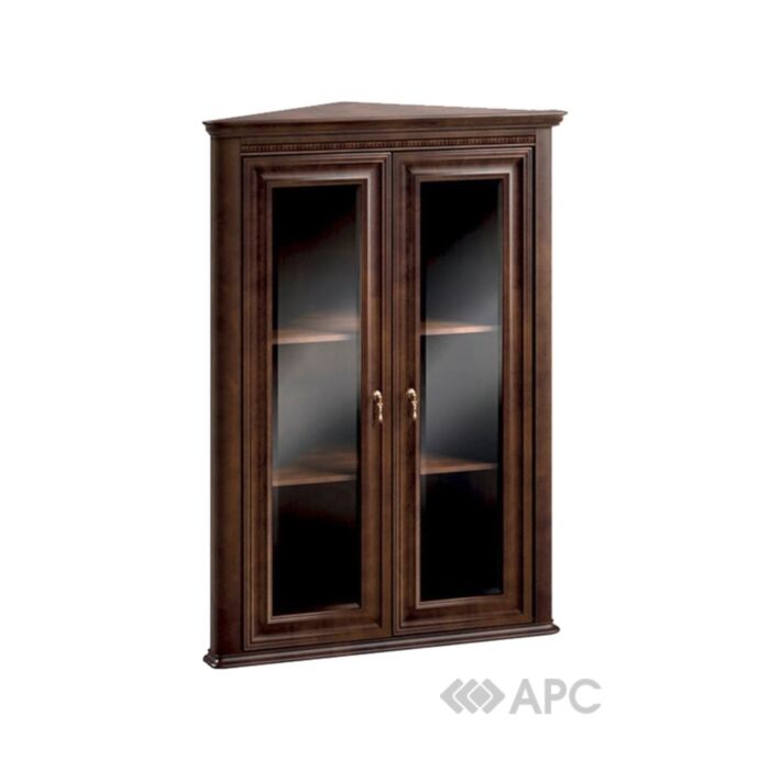 Цветовое решение: "коричневый", также может выпускаться в цвете "крем с золотой патиной". Витрины комплектуются подсветкой стеклянных полок.