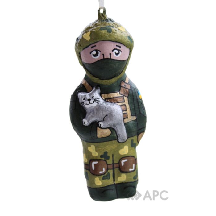 Защитник с котом Koza Dereza — это сувенирная игрушка, созданная вдохновившись нашими ВСУ, их смелыми подвигами, тем как они мужественно защищают не только жизнь украинцев, но и наших беззащитных животных. Изготовлен сувенир со использованием бумаги и опилок, поэтому можно не беспокоиться о том, что она разобьется. Каждая игрушка вылепляется, шлифуется, а также разрисовывается мастерами вручную, поэтому такие вещи имеют большую ценность.