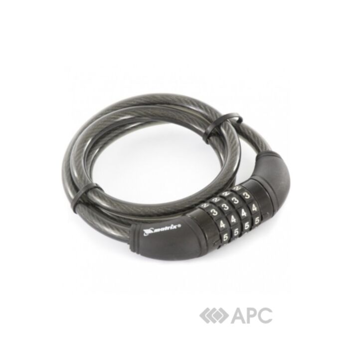 Замок тросовый универсальный с кодовым механизмом, 10*950 мм. MTX - предназначен для обеспечения сохранности велосипедов, детских колясок, санок, мототехники и т.д., а так же для запирания хозяйственных помещений. Длина троса 950 мм. Гибкий стальной трос в защитной пластиковой оболочке, диаметром 10мм. Кодовый замок делает применение замка более удобным.