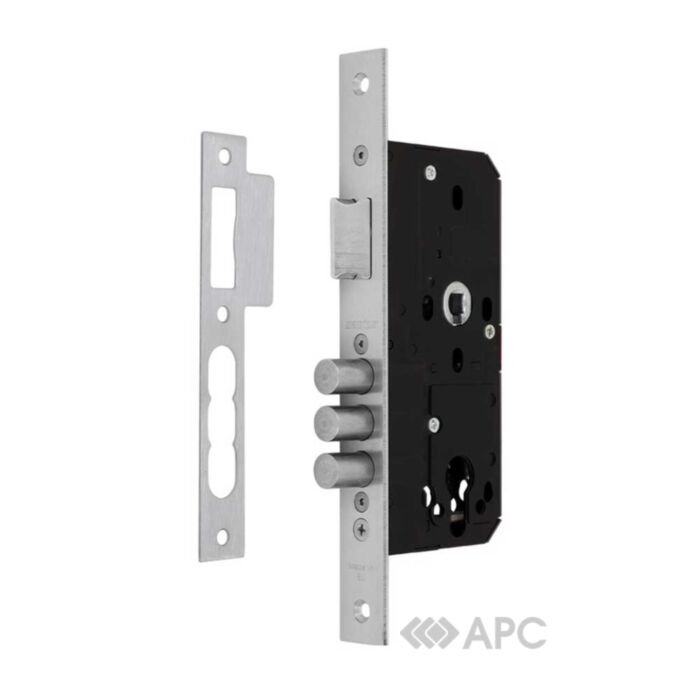 Замок Santos Sash Lock 3-й серии предусматривает возможность установки нажимной ручки "под розетку" на стяжных винтах. Совместим с защитной фурнитурой ROSTEX 3 и 4-го класса безопасности и фурнитурой стандарта DIN.