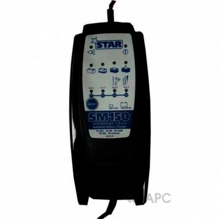 Зарядное устройство инверторного типа Deca SM 150 - это портативная инверторная модель для возобновления емкости свинцовых 12В аккумуляторов со свободным электролитом (от 14 до 225 А). Отличается современным дизайном, компактностью и эргономичной панелью управления. Зарядное напряжение DECA STAR находится в пределах от 14,4 до 14,7В (для последнего имеет класс защиты IP65, поэтому используется при низких температурах). Также одна из опций зарядного устройства SM 150 прекращает зарядку аккумулятора, если сетевое напряжение ниже 230 В. Процесс восстановления батареи абсолютно безопасен, поскольку защищен от перегрева, изменения полярности и короткого замыкания.