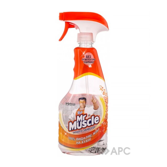 Средство для кухни Mr.Muscle Ничего лишнего с распылителем 500 мл гарантирует идеальную чистоту в вашем доме. Активные компоненты действуют уже через 30 секунд после нанесения, растворяют даже устаревшие пятна, жир и стойкие загрязнения. Жидкость отлично дезинфицирует поверхности, возвращает им сияние и блеск, чтобы вы могли наслаждаться максимальной гигиеничностью и свежестью. Обладает легким цитрусовым ароматом. Бутылки объемом 500 мл достаточно для длительного использования. Продукция известного бренда пользуется большой популярностью среди украинских потребителей, поскольку имеет доказанную эффективность и доступную стоимость.