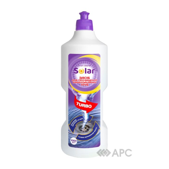 Средство для прочистки канализационных труб Solar 1 л - эффективно очистит любые виды засоренных сливных труб, сифонов кухонных моек, раковин и ванн. Его мощная формула быстро растворяет жировые и белковые отложения, волосы и остатки пищи, даже в наиболее сложных случаях. Также имеет антибактериальный эффект, который помогает устранить неприятные запахи. Важно, что он безопасен для всех видов труб.