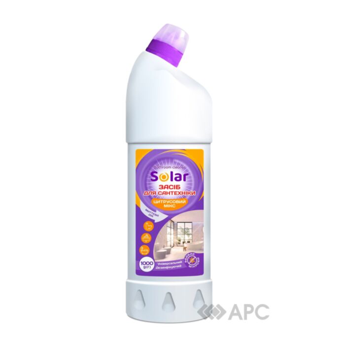 Средство для сантехники Solar универсальное Цитрусовый микс 1000 г быстро и эффективно уберет грязь, ржавчину, известковый налет в вашем доме. Продукт обладает антибактериальными свойствами, так что можете быть уверены, что помещение будет сверкать чистотой. Очищая сантехнику, кафель, поверхности, наделяет ванную комнату необычайным блеском и приятным ароматом. Удобная конструкция обеспечивает доступ к самым отдаленным уголкам комнаты. Выгодная форма выпуска средства экономит использование.