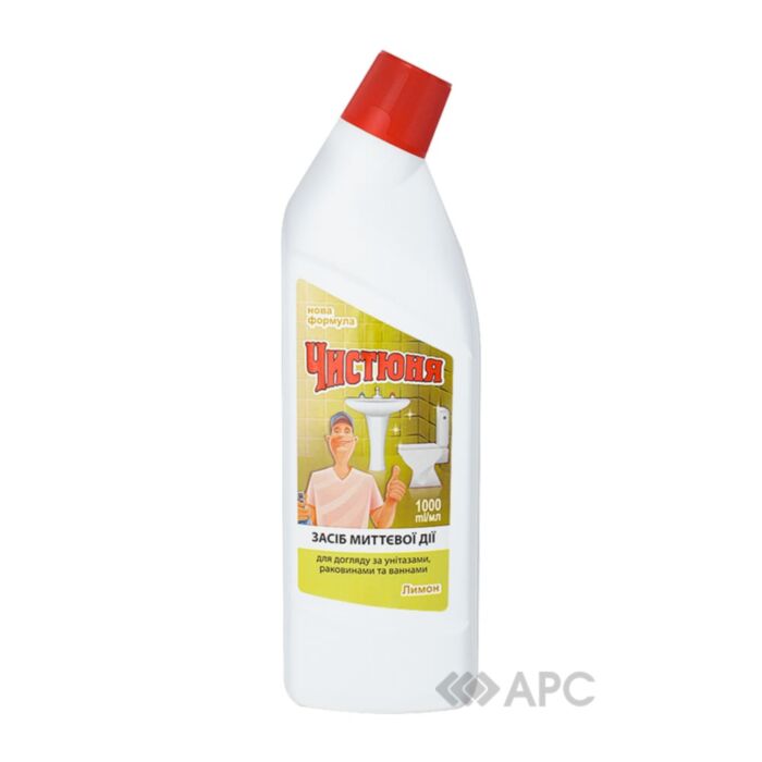 Средство для унитаза Чистюня — ваш надежный помощник по уходу за сантехникой. Активные компоненты очищают поверхность от устойчивых устаревших загрязнений, растворяют налет и ржавчину, гарантируя уничтожение до 99,9% микробов. Удобная эргономичная форма позволяет наносить средство прямо под ободок унитаза, а специальный дозатор помогает экономно использовать жидкость. Свежий аромат лимона быстро перекрывает все неприятные запахи в туалете. Продукция известной торговой марки имеет доказанную эффективность, поэтому пользуется большой популярностью среди украинских потребителей. Объем — 1000 мл.