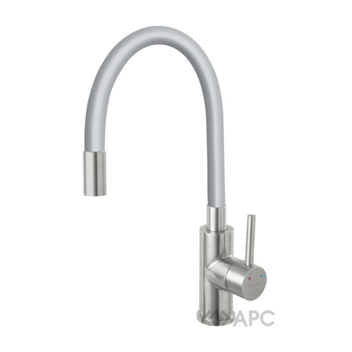 Преимуществами товара является керамический картридж, обладающий высокой износостойкостью, прочный корпус из нержавеющей стали, наличие аэратора, который предотвращает образование налета и наполняет воду кислородом. Выделяется среди других возможностью изменения формы, высоты и цвета серого, матовой трубы. Высота регулируется 27,4-41,8 см, длина 20–43,9 см.
