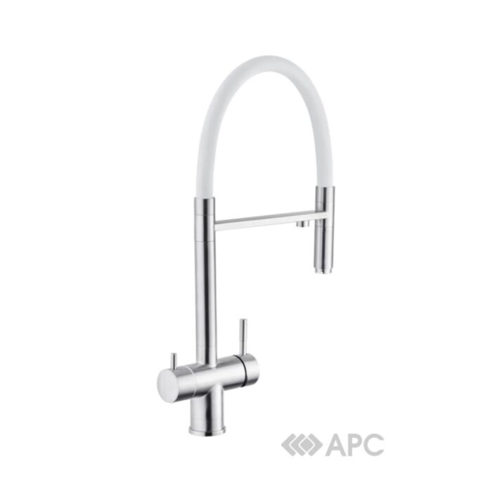 Смеситель для кухни Kroner KRP Edelstahl-Klassisch ESG03815WHI - это удачное сочетание современного дизайна и высокой функциональности, созданное специально для требовательных кухонных интерьеров. Изготовленный из премиальной нержавеющей стали, он отличается чрезвычайной устойчивостью к коррозии, ударам и трещинам, что обеспечивает его длительный срок службы. Предмет имеет стильный U-образный излив с поворотным механизмом, что делает использование максимально удобным и практичным. Особенность модели - возможность подключения к фильтру, благодаря чему можно получить чистую питьевую воду непосредственно из крана. Три контура подключения гарантируют легкое управление холодной и горячей водой, а также смешивание их с помощью надежного картриджа.