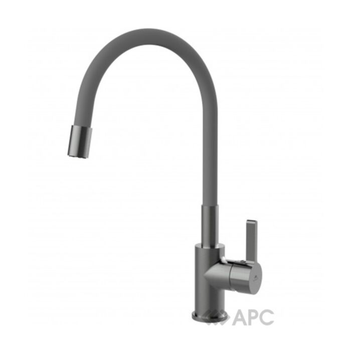 Смеситель для кухни Rubineta Flexy-33 FL300DG8 серый - это высокотехнологичный и стильный однорычажный кран из серии Flexy, который идеально сочетает современную практичность и изысканный дизайн. Корпус изготовлен из очищенной латуни RubiBrass без вредных примесей, устойчивой к царапинам и загрязнениям, а покрытие корпуса - гальваническое с лаком. Ключевая особенность модели - гибкий излив (рукав), который легко фиксируется в нужном положении: он укреплен двумя стальными пружинами и покрыт серым силиконовым чехлом, а внутри излива находится эластичная трубка из безопасного для здоровья EPDM-каучука. Смеситель оснащен надежным керамическим картриджем 35 мм от испанского производителя Citec. Установка осуществляется на кухонную раковину или столешницу с помощью крепления-втулки. Высота устройства составляет 400 мм, а подключение к водопроводу 1/2''. Смеситель оснащен передовыми технологиями, включая систему подавления шума Anti-Noise и технологию Air+Water с немецким аэратором NEOPERL® Cashe HC, которая экономит воду, насыщая поток воздухом и уменьшая брызги.
