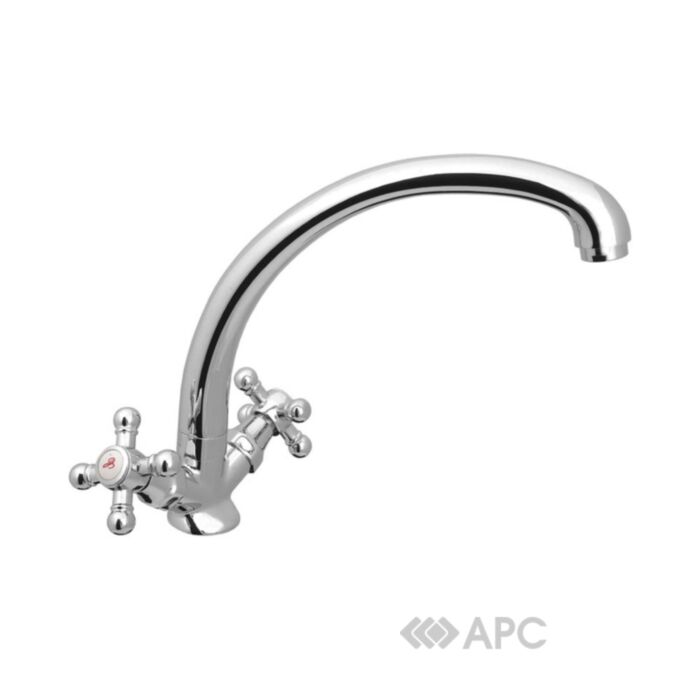 Rubineta Rubin R-8 Cross R8T006 - двухвентильный смеситель для кухни из латуни с хромированным покрытием. Смеситель пидклюваеться к шлангу под диаметр 1/2 ".