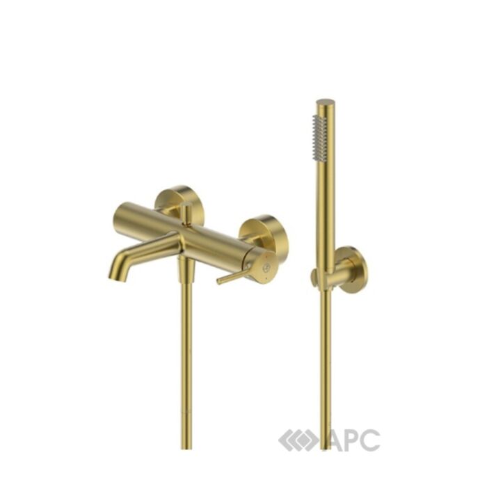 Смеситель для ванны Armaform Silvia Gold 2034-520-31 с душкомплектом – это одноважельная модель настенного монтажа, поставляемая в комплекте с душевым гарнитуром. Это изделие из коллекции Silvia отличается современным дизайном с изысканным золотым покрытием, нанесенным с помощью технологии PVD. Такое покрытие обеспечивает высокую устойчивость к износу, царапинам и коррозии, гарантируя долговечность и сохранение яркого цвета. Корпус смесителя изготовлен из латуни. Управление напором и температурой воды осуществляется одним рычагом, а переключение между функцией наполнения ванны и душем – встроенным дивертором. Наличие душевого комплекта (ручная лейка, шланг и держатель) делает его функционально завершенным решением для стильной и современной ванной комнаты, добавляя в интерьер роскошный золотой акцент.