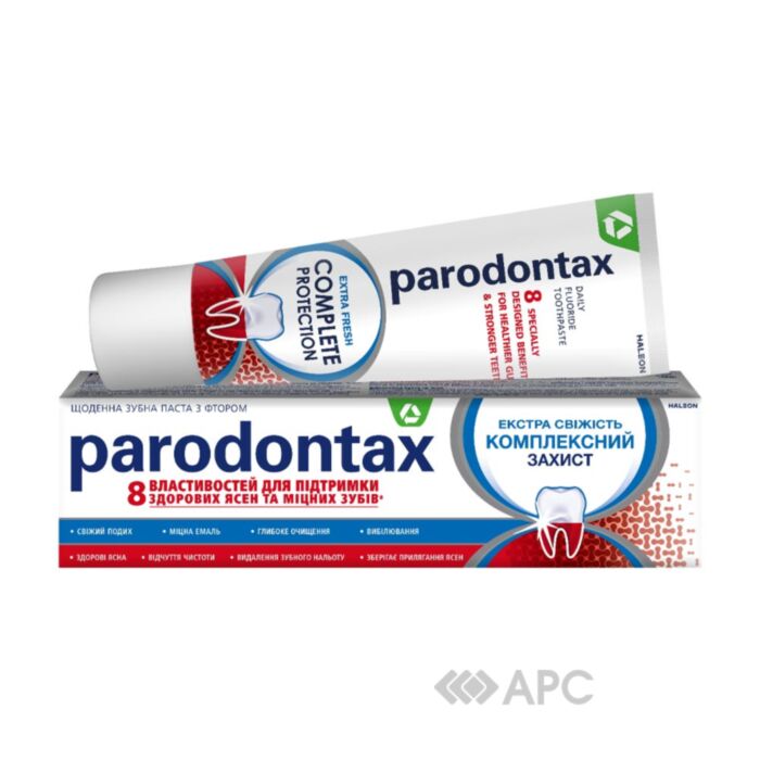 Зубная паста Parodontax Комплексная защита экстра свежесть 75 мл заботится о здоровье зубов и десен, освежает дыхание и дарит белоснежную улыбку. Активный фтор, входящий в состав, создает надежную защиту от кариеса, укрепляет эмаль. Бикарбонат натрия устраняет зубной налет и неприятный запах. Растительные экстракты успокаивают десны, уменьшают кровоточивость и снимают воспаление. Средство глубоко очищает и укрепляет эмаль, удаляет бактериальный налет, обеспечивает бережное отбеливание. Регулярное использование пасты Parodontax устраняет риски стоматологических заболеваний, дарит свежесть дыхания и безупречную белизну зубов.