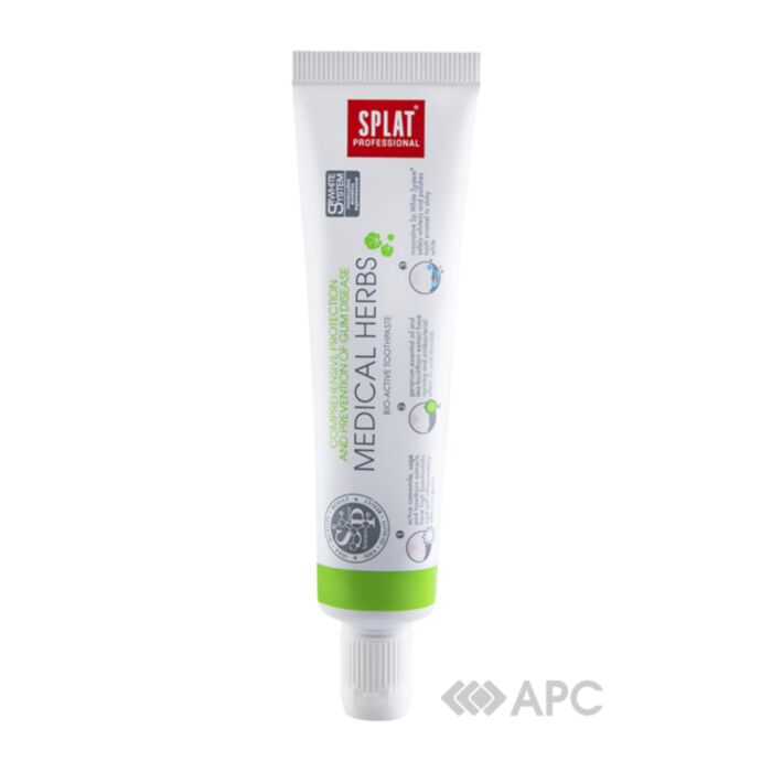 Зубная паста Splat Professional Medical Herbs 40 мл изумрудного цвета и гелеобразной консистенции обеспечивает ежедневный уход ротовой полости. Содержит кальций, полученный из яичной скорлупы, что укрепляет эмаль и в сочетании с фторид-ионами создает надежную защиту от кариеса. Лечебные травы обладают комплексным антибактериальным, противовоспалительным действием, тонизируют и укрепляют десны. Эфирное масло герани обезболивает и оказывает антисептический эффект. Боярышник, ромашка и шалфей эффективно уничтожают болезнетворные бактерии, облепиха способствует заживлению мягких тканей. Splat Professional Medical Herbs защищает полость рта от стоматологических заболеваний, укрепляет зубы и освежает дыхание.