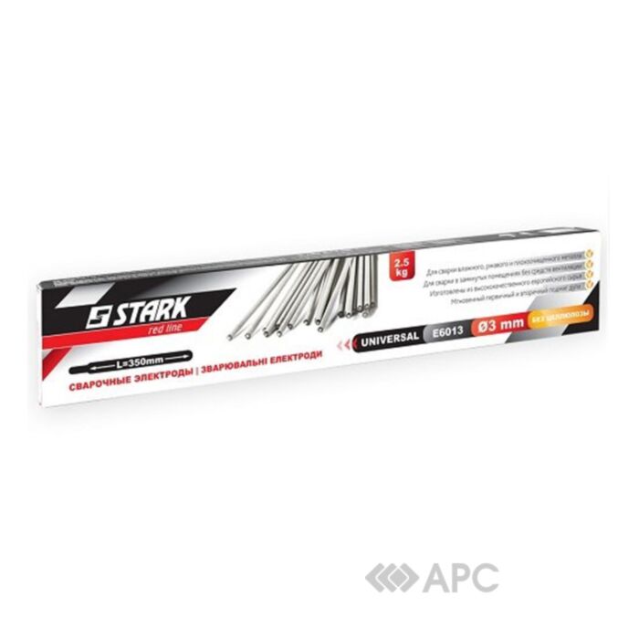 Сварочные электроды Stark Universal E-6013, 3 мм прекрасно подходят для работы с низкоуглеродистой сталью, толщина которой не превышает 20 мм. Изделие не содержит целлюлозы, покрыто только слоем рутила, им можно работать в различных положениях, даже в вертикальном (сверху вниз). Для работы электродов подходит не только постоянный, а также переменный ток.