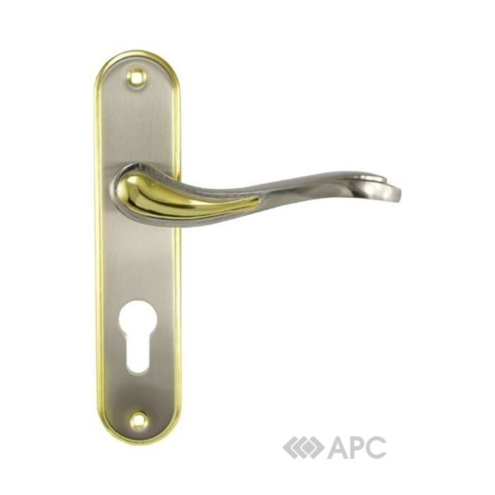 Міжкімнатний дверний замок-ручка без серцевини під циліндровий механізм. Колір - сатин / золото Міжосьова відстань, мм - 62