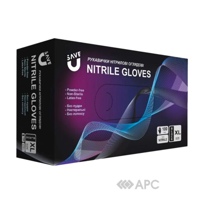 Рукавички оглядові нітрилові Save U XL чорні 100 шт — це ідеальний вибір для тих, хто шукає надійний захист та комфорт під час роботи. Виготовлені зі 100% нітрилу, гарантують високу міцність, довговічність, залишаючи руки сухими та захищеними. Розмір XL підходить для великого розміру долоні, а прямі пальці дозволяють використовувати їх як для правої, так й для лівої руки, гарантуючи зручність у русі. Упаковка містить 100 штук (50 пар), що робить їх економним, практичним вибором для професійного використання або в домашніх умовах.