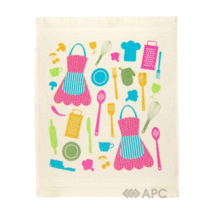 Махрова серветка Home Line Господарочка 30х40 120426 - невеликий кухонний рушник з веселим різнокольоровим принтом, який просто необхідний для виконання різноманітних побутових завдань. Натуральний склад виробу гарантує комфортне використання, а його експлуатаційні властивості забезпечують збереження всіх характеристик протягом тривалого використання. Також невеликий махровий рушник з красивим малюнком стане частиною композиції інтер'єру.