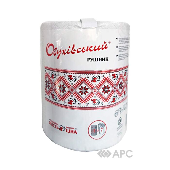 Рушник паперовий Обухівський — це універсальна продукція від українського виробника, що призначена для побутового використання. Виготовляються із натуральної целюлози, на якісному, італійському обладнанні, двошарового типу. Характеризуються відмінними властивостями — добре вбирають вологу та не розлазяться. В рулоні 350 листів, які розділені перфорацією. Довжина виробу 77 м — замінить 7 звичайних, малих рулонів. Вирізняється доступною ціною. Розмір листа: 23х22 см.