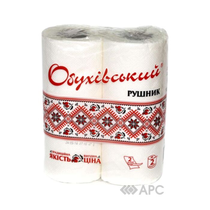 Рушник паперовий Обухівський — це класична продукція від українського виробника, яка призначена для використання на кухні та ванній. За його допомогою можна просушити руки, витерти розлиту рідину чи вимите яблуко. Виготовляється зі 100% целюлози, білого кольору, без додаткових домішок. Двошаровий, з тисненням, яке скріплює листи ще щільніше. Має чудові вологопоглинальні властивості, з перфорацією, що робить користування ще зручнішим, оскільки дозволяє легко відривати листи між собою. Рулон накручується на втулку, що дозволяє розмістити його на диспенсері.