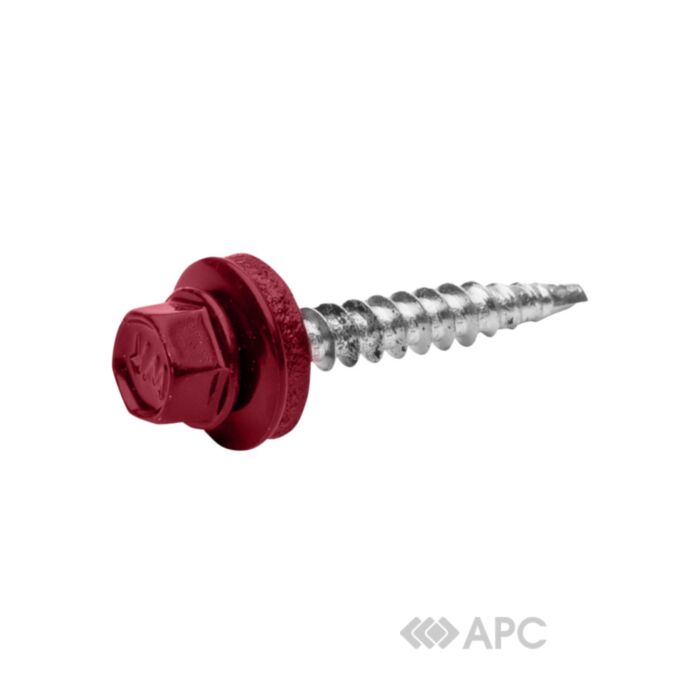 Саморіз покрівельний Wkret-Met 4.8*55 темно-червоний 3005 застосовується в процесі монтажу профнастилу та металочерепиці до дерев'яних конструкцій. У комплектацію товару включена металева шайба з гумовою прокладкою, що дозволяє максимально щільно притиснути покрівельний матеріал до спорудження, забезпечуючи тим самим герметичність з'єднання. Така технологія дозволяє усунути проникнення вологи в місцях стикувань деталей, що запобігає появі корозії. Покрівельні саморізи представлені в широкій палітрі кольорів відповідно до системи RAL, що дозволяє підібрати кріпильний матеріал в тон даху.