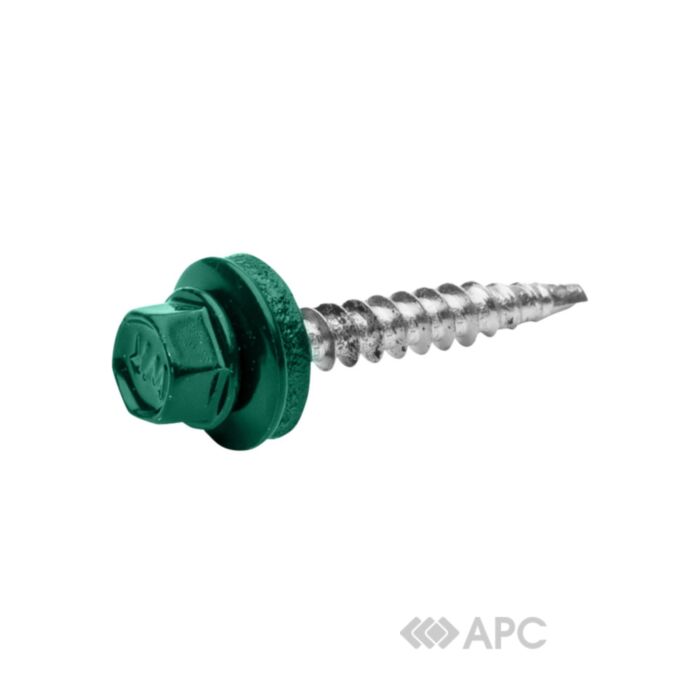Саморіз покрівельний Wkret-Met 4.8*55 зелений 6005 застосовується в процесі монтажу профнастилу та металочерепиці до дерев'яних конструкцій. У комплектацію товару включена металева шайба з гумовою прокладкою, що дозволяє максимально щільно притиснути покрівельний матеріал до спорудження, забезпечуючи тим самим герметичність з'єднання. Така технологія дозволяє усунути проникнення вологи в місцях стикувань деталей, що запобігає появі корозії. Покрівельні саморізи представлені в широкій палітрі кольорів відповідно до системи RAL, що дозволяє підібрати кріпильний матеріал в тон даху.