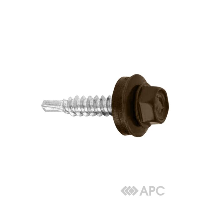 Саморіз покрівельний Wkret-Met 4.8*35 коричневий 8017 застосовується в процесі монтажу профнастилу та металочерепиці до дерев'яних конструкцій. У комплектацію товару включена металева шайба з гумовою прокладкою, що дозволяє максимально щільно притиснути покрівельний матеріал до спорудження, забезпечуючи тим самим герметичність з'єднання. Така технологія дозволяє усунути проникнення вологи в місцях стикувань деталей, що запобігає появі корозії. Покрівельні саморізи представлені в широкій палітрі кольорів відповідно до системи RAL, що дозволяє підібрати кріпильний матеріал в тон даху.