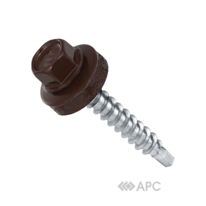 Саморіз покрівельний Wkret-Met 4.8*55 темно-коричневий 8017 застосовується в процесі монтажу профнастилу та металочерепиці до дерев'яних конструкцій. У комплектацію товару включена металева шайба з гумовою прокладкою, що дозволяє максимально щільно притиснути покрівельний матеріал до спорудження, забезпечуючи тим самим герметичність з'єднання. Така технологія дозволяє усунути проникнення вологи в місцях стикувань деталей, що запобігає появі корозії. Покрівельні саморізи представлені в широкій палітрі кольорів відповідно до системи RAL, що дозволяє підібрати кріпильний матеріал в тон даху.