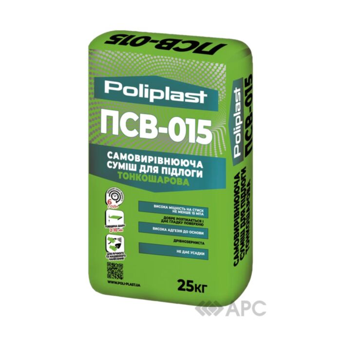 Самовирівнююча суміш для підлоги Поліпласт ПСВ-015 - це суміш цементу, гіпсу з мінеральними наповнювачами та полімерними модифікаторами. Вона застосовується для фінішного тонкошарового вирівнювання і для підготовки горизонтальних стійких основ під укладання фінішних покриттів для підлоги (плитки, паркету, ламінату, лінолеуму і ковроліну).