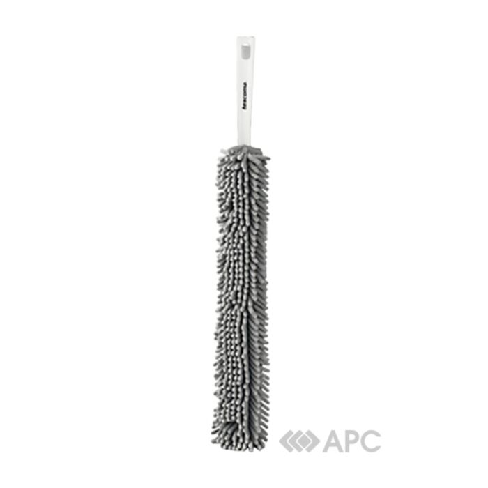 Щітка для пилу Tescoma ProfiMATE 900938 еластична відмінно підходить для очищення поверхонь меблів, жалюзі, домашнього декору та інших поверхонь, на яких накопичується пил. Насадка з мікроволокна має один гладкий бік та один волокнистий, завдяки чому ефективно спрацьовує в різних умовах експлуатації та підходить для машинного прання. Сама основа виготовлена з міцного та еластичного пластику, завдяки чому може набувати будь-якого положення. Виріб можна вішати на стіну на гачок, а також використовувати в комплексі з універсальною телескопічною ручкою бренду.