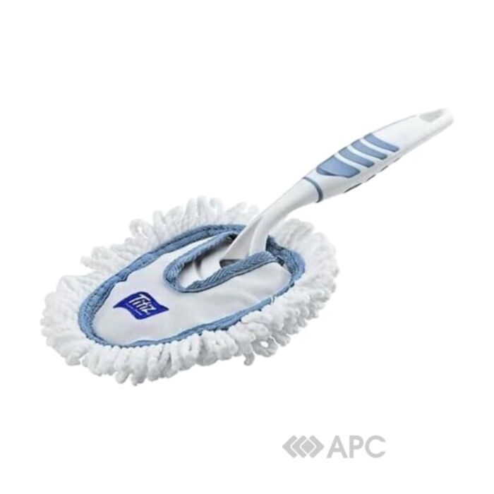 Щітка для прибирання Titiz Plastik TP-337 – це сучасний та ергономічний інструмент, розроблений для ефективного та зручного збирання пилу та дрібного сміття. Вона складається з довгої ручки білого кольору з синіми рельєфними вставками, що забезпечують надійний та комфортний хват. Робоча частина являє собою овальну насадку з пухнастими мікрофібровими волокнами білого кольору, які ефективно притягують пил, а також мають синю окантовку, що підкреслює дизайн. Така конструкція дозволяє легко очищати різні поверхні, включаючи меблі, техніку, полиці та важкодоступні місця. Мікрофіброва насадка знімається для легкого очищення та прання, що робить щітку гігієнічною та довговічною.