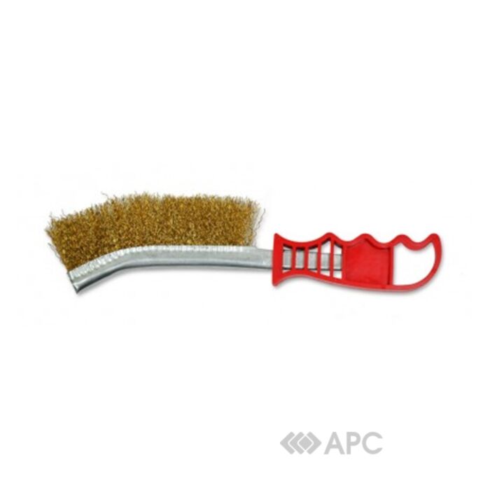 Щітка ручна Spitce 18-015 з пластиковою ручкою і гофрованим латунним дротом застосовується для ефективного видалення старої фарби, іржі та забруднень на поверхні м'який металів, пластику і деревини. Виріб характеризується делікатною обробкою завдяки спеціальній щетині з оптимальною довжиною і щільністю, рівномірно нанесеній на міцну металеву шину. Ручна щітка просто незамінна в вузьких місцях завдяки зручній конструкції і ергономічній ручці.