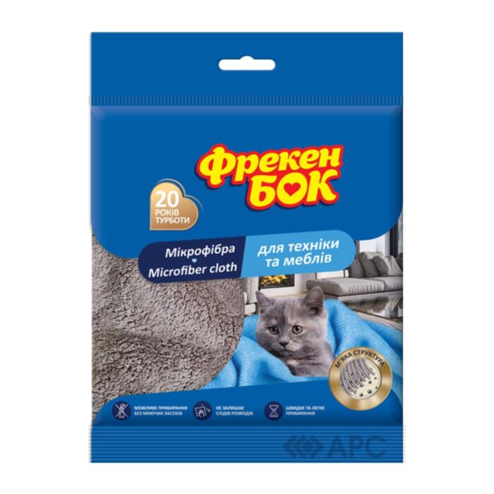 Серветка для меблів та техніки Фрекен Бок з мікрофібри 1 шт - це універсальний помічник для вирішення багатьох побутових завдань. Структура волокна тканини відмінно проникає в найдрібніші отвори оброблюваних об'єктів та захоплює мікроорганізми, вологу і пил, надійно утримуючи їх на своїй поверхні. Саме ця особливість і визначає ефективне використання виробу в процесі прибирання будинків, квартир, офісів та закладів громадського харчування.