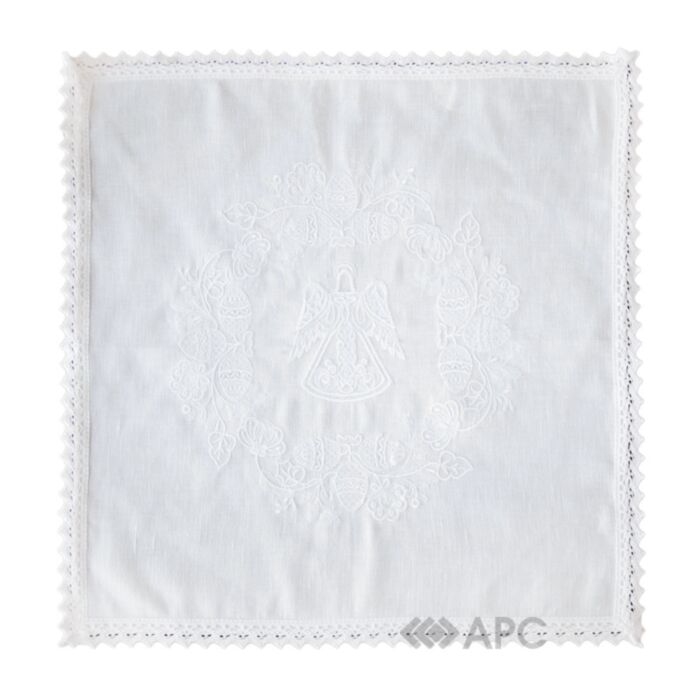 Серветка великодня Едельвіка 06-24/09 45*45 см елегантно поєднує сучасну естетику з елементами вічного символізму. Білосніжна тканина, що містить льон, бавовну та поліестер, має приємну структуру та міцність, що дозволить стати їй атрибутом свят на багато років. Крилатий ангел в центрі виробу символізує світло, благословення та духовний захист. Його обрамлює тендітний вінок з квітів та писанок, що демонструє святковість та витонченість білої вишивки. Тонке мереживо оздоблює краї та додає ошатності виробу. Серветка відмінно зберігає форму після прання, приємна на дотик та має текстуру природних волокон. Вона стильно прикрасить великодній стіл, кошик та стане ніжним доповненням святкового декорування дому.