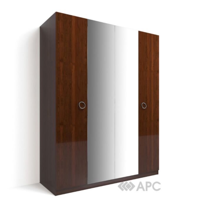 Шафа чотирьохстулкова виготовлена в стилі мінімалізму: чітка геометрія форм, сучасні матеріали, продумана функціональність. У шафі Diamond дві центральні дверки мають по всій площі дзеркальні накладки. Вона складається з трьох відділень: одинарного з чотирма полками, подвійного зі штангою і полицею, одинарного зі штангою і двома полками.