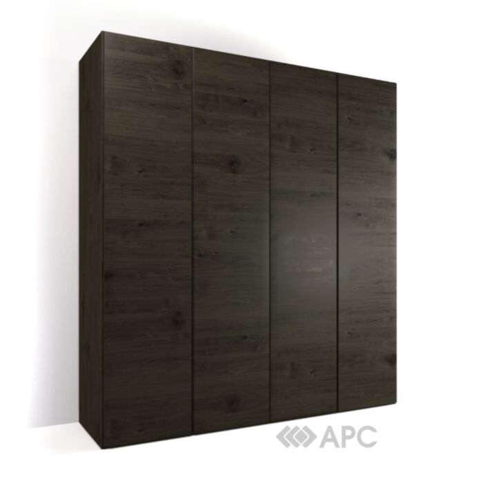 Видимі частини виробу (фасади, боковини) шпоновані натуральним шпоном цінних порід дерева. Петлі CLIP TOP зі вбудованим доводчиком BLUMOTION виробництва BLUM (Австрія). Шафа додатково комплектується касетою, дерев'яної штангою, полицею в подвійній секції, системою підсвічування для подвійних секцій.