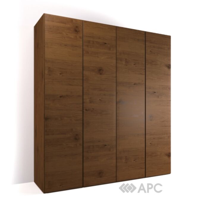 Видимі частини виробу (фасади, боковини) шпоновані натуральним шпоном цінних порід дерева. Петлі CLIP TOP зі вбудованим доводчиком BLUMOTION виробництва BLUM (Австрія). Шафа додатково комплектується касетою, дерев'яної штангою, полицею в подвійній секції, системою підсвічування для подвійних секцій.
